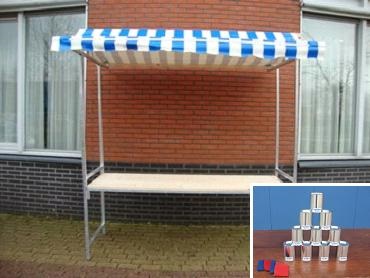 Huur hier het blikgooien met feestkraam voor ouderwets plezier! Gooi met de pittenzakjes zoveel mogelijk blikken van de feestkraam af. Wie gooit de blikken in een worp om?