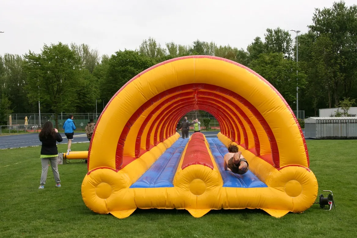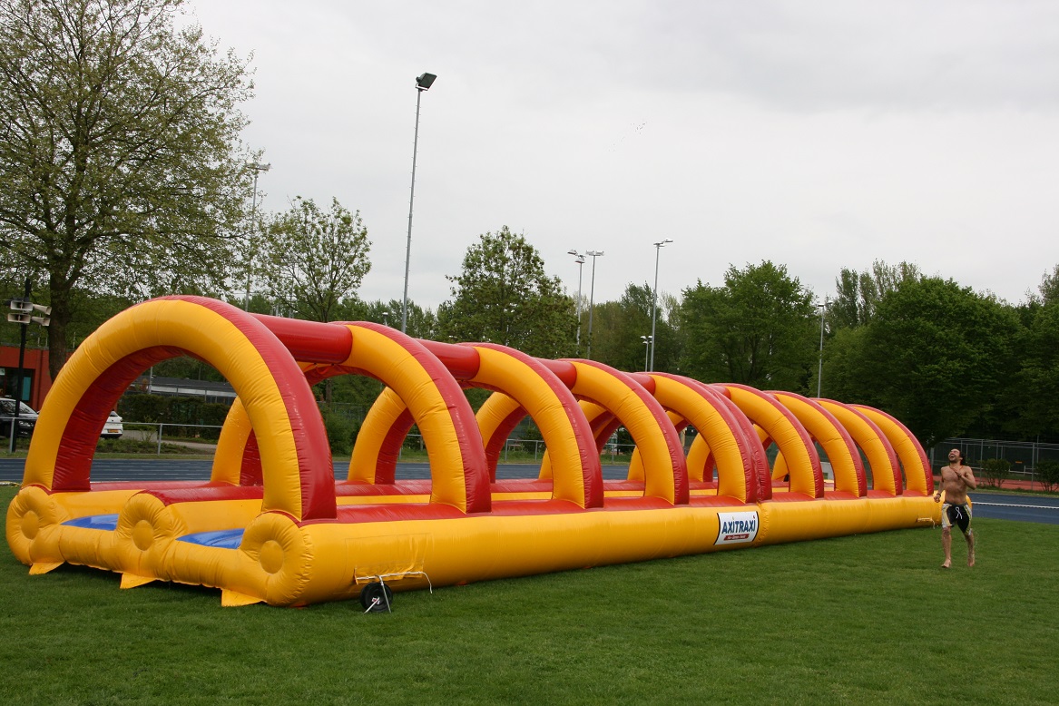 Deze opblaasbare buikglijbaan is zo’n 23,5 meter lang en daardoor een uitdaging voor jong en oud. Huur deze uitdagende baan daarom nu voor uw zeskamp of ander evenement. Neem een lange aanloop en glijd zo hard als je kunt. Welke deelnemer glijd het verste door?