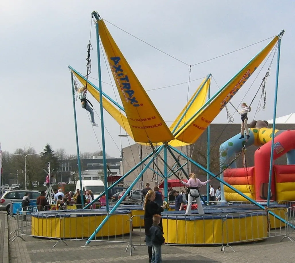 Deze bungee trampoline 4-voudig is absoluut veilig. Alle attracties van Axitraxi worden jaarlijks door een onafhankelijke instantie gekeurd. Daarmee voldoen ze aan de Nederlandse veiligheidseisen.