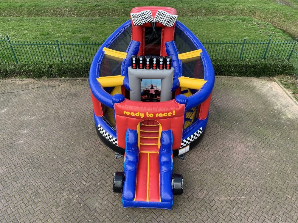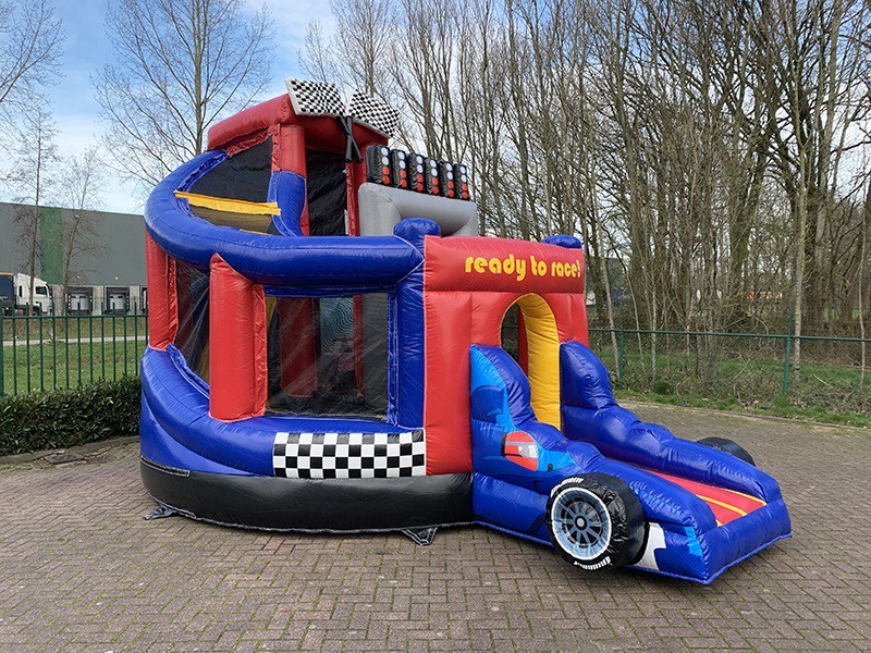 Dit springkussen Donut Slide Race is een echte musthave op ieder kinderfeestje van een racefan! Deze is voorzien van mooie details en een stoere F1 auto aan de voorzijde voor max plezier. Klim omhoog via de trap en glijd naar beneden over de ronde glijbaan. In het midden is nog een springvlak waar de kids lekker kunnen rondspringen. Ben jij Ready to Race?
