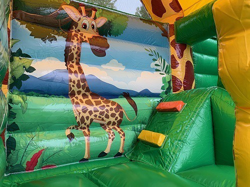 Dit springkussen Multifun Minni Giraffe heeft ook vrolijke uitstraling en maakt het feest compleet. De achterwand van dit springkussen heeft een vrolijke print. Ook de baby giraffe op het springbed heeft een enorme aantrekkingskracht op de kids. Een leuk springkussen voor in de tuin of op een kinderfeestje.