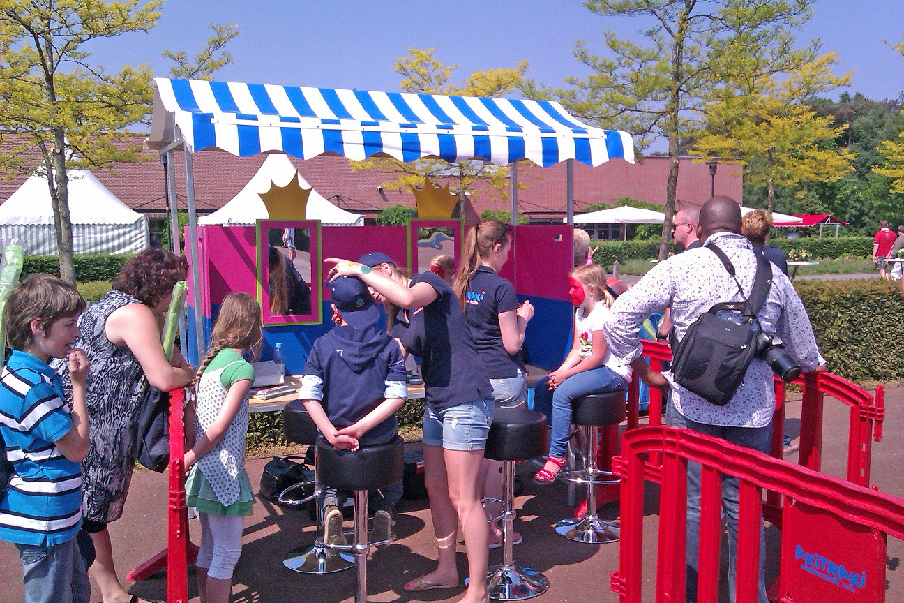 Deze prachtige schminkkraam is inclusief 2 schminksters. Ouderwets schminken blijft erg in trek bij de kinderen! Een schminkstand is geschikt voor ieder evenement, het zorgt voor hele rijen.