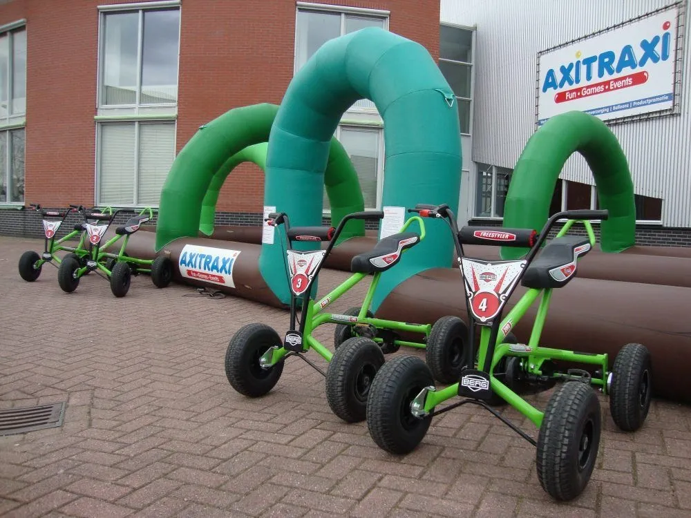 Klaar voor de start? Go! Fiets met deze stoere trikes zo snel mogelijk het parcours. Deze skelterbaan is makkelijk op te zetten en biedt direct een spannende racebaan om een wedstrijdje op te houden. Wie is het snelst op de skelter? Kinderen kunnen er geen genoeg van krijgen en zich lekker actief uitleven. Ideaal voor op een evenement, maar ook op kinderfeestjes doet de trikebaan het goed. Bij Axitraxi kunt u ook losse skelters huren.