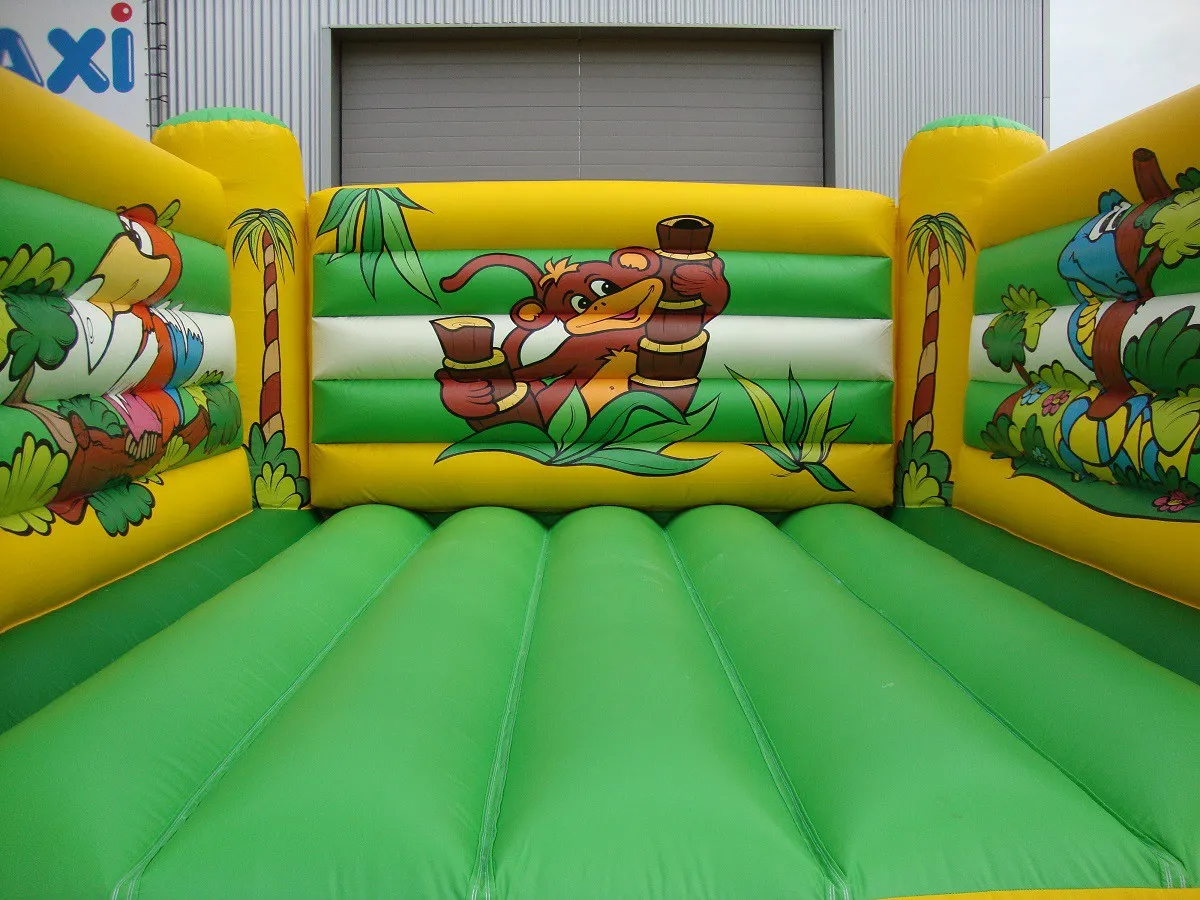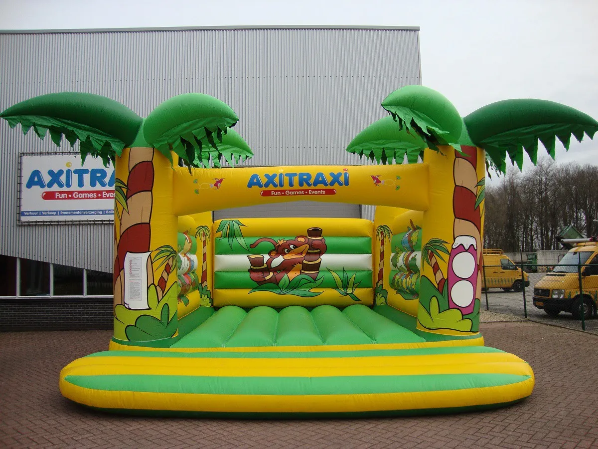 Het grote springkussen Tropical van Axitraxi mag niet ontbreken op een zomers feest. Huur hier een twaalfpersoons springkussen Tropical dat de kinderen meteen in vakantiesfeer brengt: het Hollandse klimaat lijkt opeens ver weg. Op een tropisch evenement, zomerbraderie of schoolfeest is dit luchtkussen een prachtige blikvanger, vooral dankzij de coole palmbladeren. Het zomerse luchtkasteel kan niet wachten om op uw evenement te stralen. Axitraxi verhuurt al 30 jaar attracties en biedt dan ook de beste service en kwaliteit. Met een springkussen van Axitraxi kan het feest niet meer stuk.