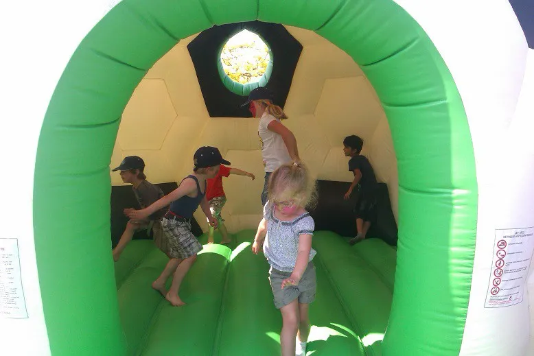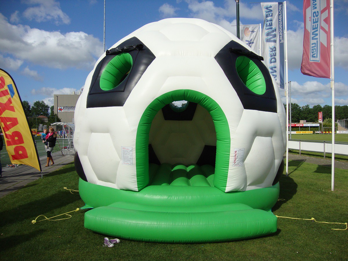Huur dit sportieve springkussen voetbal dat bij veel fans het hart sneller zal doen kloppen! In dit overdekte luchtkussen kun je niet alleen rondspringen in de wedstrijd van je verbeelding, je kunt je bovendien kwalificeren door een bal door de gaten te schieten of te gooien! Dankzij het spelelement is dit springkussen echt een sportieve uitdaging en een leuke voetbalattractie bij een school- of sportfeestje. Ook geschikt voor sportpromotie. Huur dit springkussen bij Axitraxi, de attractieverhuurder met meer dan 30 jaar ervaring.