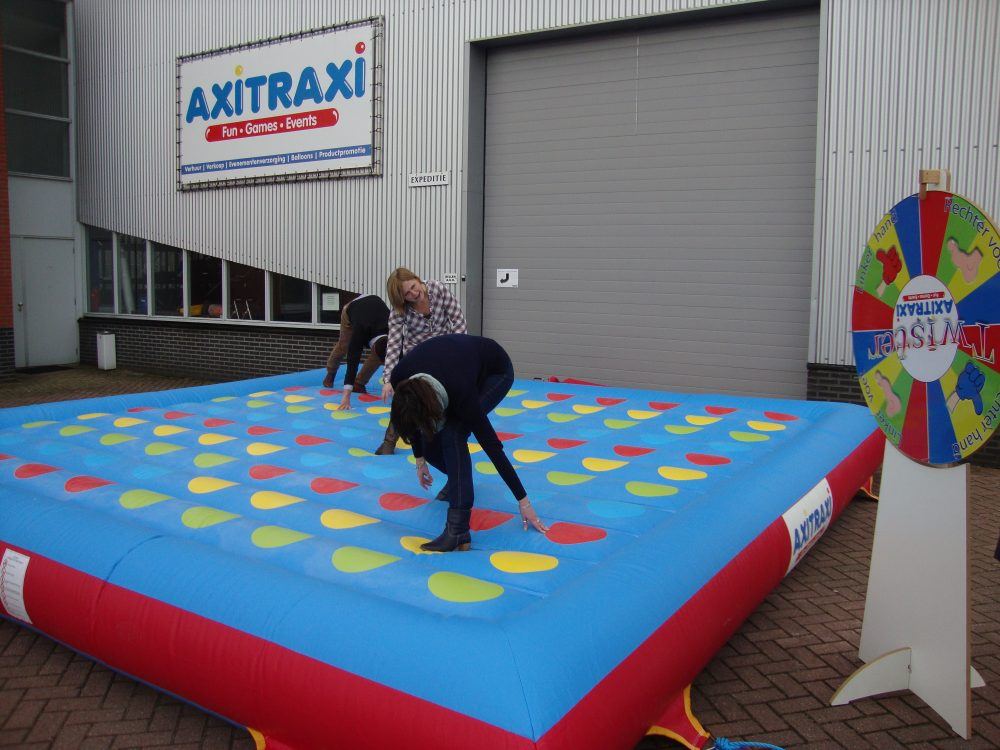 Bij Axitraxi is het mogelijk een opblaasbare variant van het welbekende spel Twister te huren. Een persoon bedient het wijzerbord van de twister. De personen op het opblaasbare kussen voeren vervolgens de opdrachten uit. De persoon die het langst op de twistermat blijft staan heeft gewonnen.