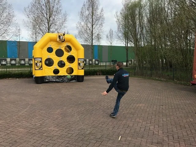 Deze voetbaltunnel Vitesse met gatenwand is exclusief te huur bij Axitraxi. Ga de competitie aan en probeer zoveel mogelijk punten te scoren. Een leuke attractie om te huren in Arnhem
