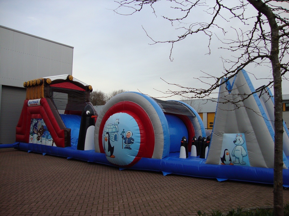 Het huren van deze coole winterse stormbaan maakt u winterse evenement compleet. Klim en klauter zo snel mogelijk over deze winterse stormbaan heen! De winterse stormbaan biedt vermaak voor jong en oud. Beat the pinguins, bedwing de klimwand en ga hilarisch onderuit op deze uitdagende stormbaan met winter thema.