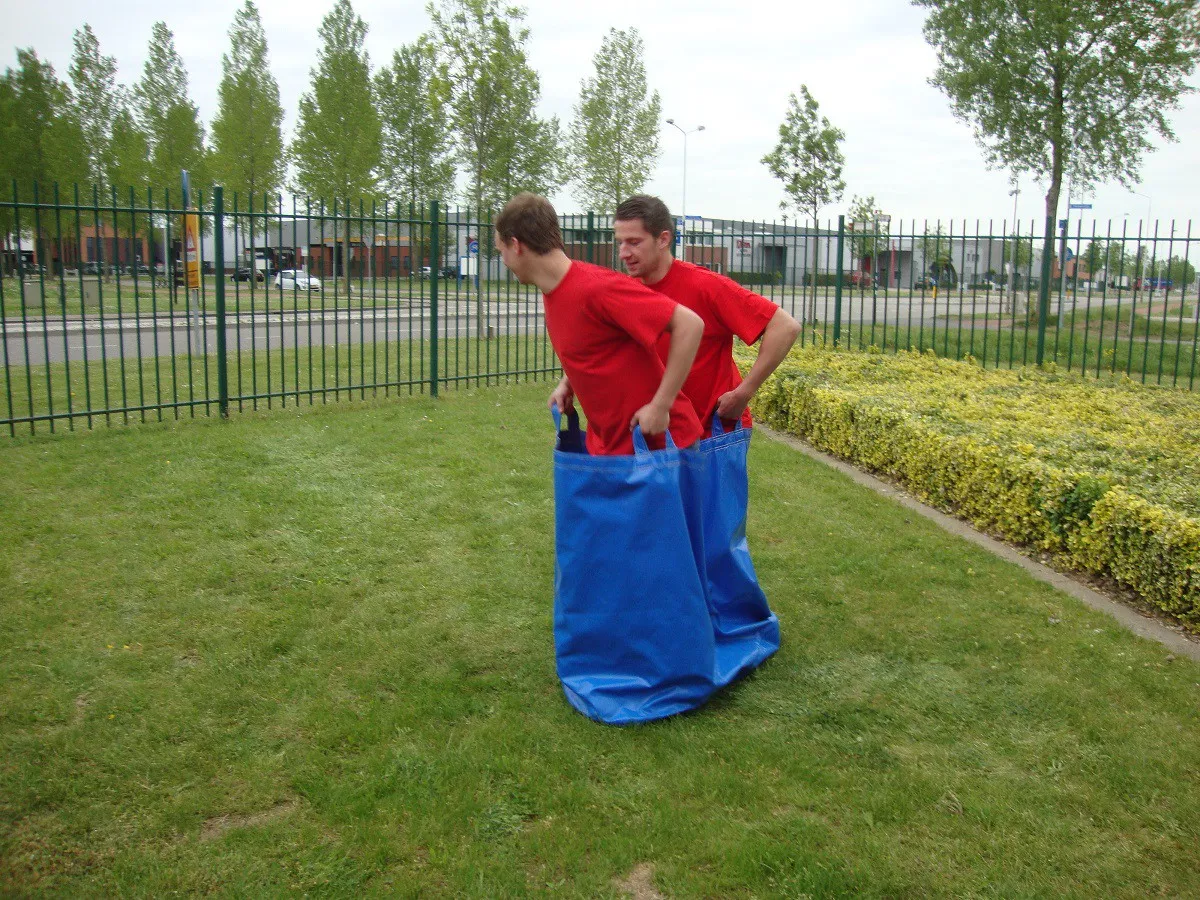 Zaklopen 2 personen hurenOud Hollands zaklopen 2-persoons is hier te huur. Neem met 2 personen naast elkaar plaats in de zak. Leg uw parcours zo snel mogelijk af door precies tegelijk te springen.